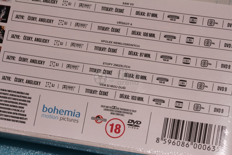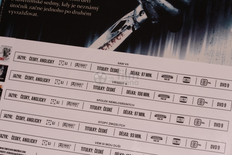 - HOROROVÁ KOLEKCE: Saw VII + Vem si mou duši + Spolek nemilosrdných + Vřískot 4 + Stopy zmizelých Kolekce (5 DVD)